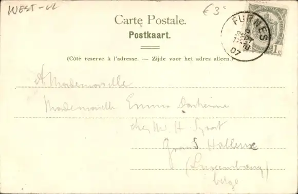 Zustand, siehe Scan, gelaufen, 1907 - ca 14 cm X 9 cm