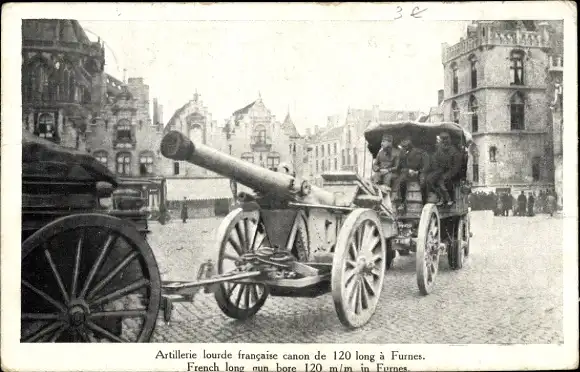 Ak Furnes Veurne Westflandern, Französisches Geschütz, I WK