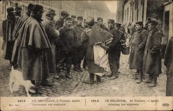 Ak Furnes Veurne Westflandern, spahi racontant ses exploits