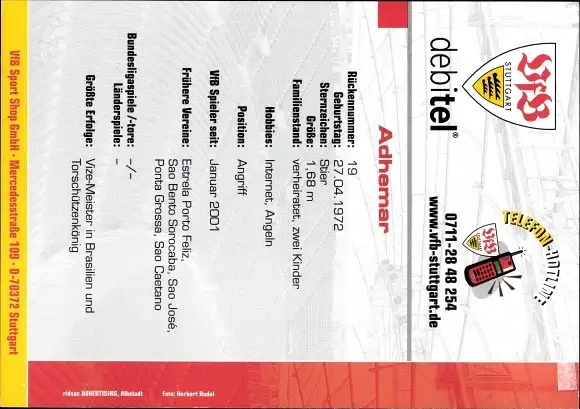 Ak Fußballer Adhemar, Portrait, Autogramm, VfB Stuttgart