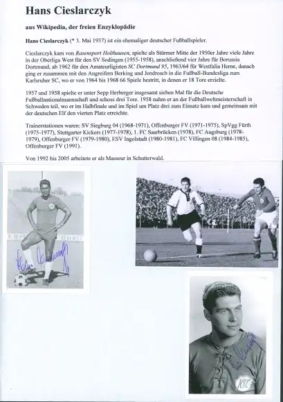 Ak Fußballer Hans Cieslarczyk, Portrait, Autogramm