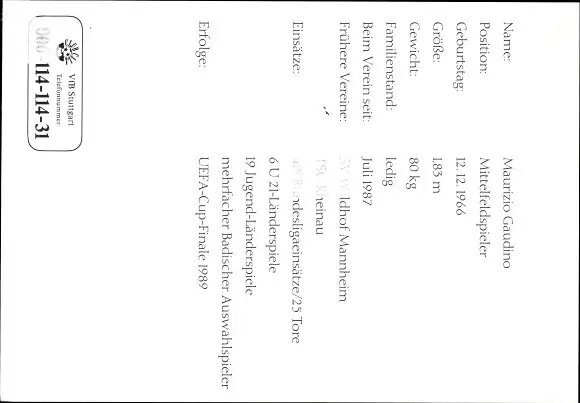 Ak Fußballer Maurizio Gaudino, Portrait, Autogramm, VfB Stuttgart
