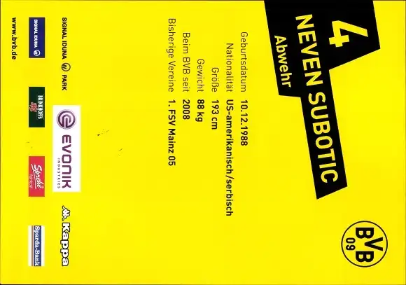 Ak Fußballer Neven Subotic, Portrait, Autogramm, BVB 09