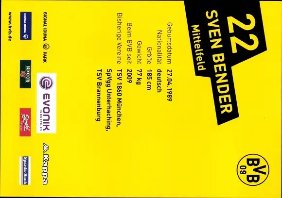 Ak Fußballer Sven Bender, Portrait, Autogramm, BVB 09