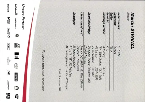 Ak Fußballspieler Martin Stranzl, Portrait, Autogramm