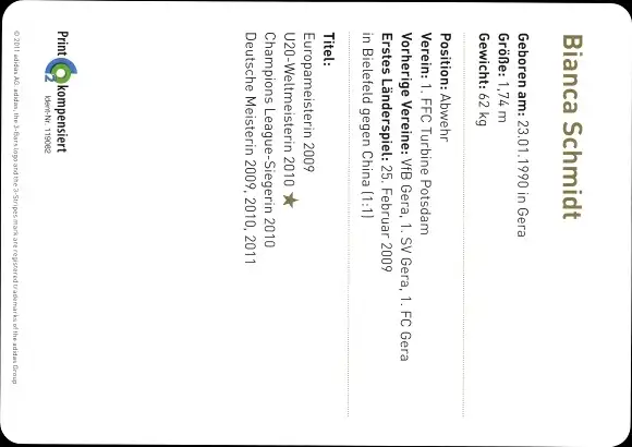 Ak Fußballspielerin Bianca Schmidt, Portrait, Autogramm