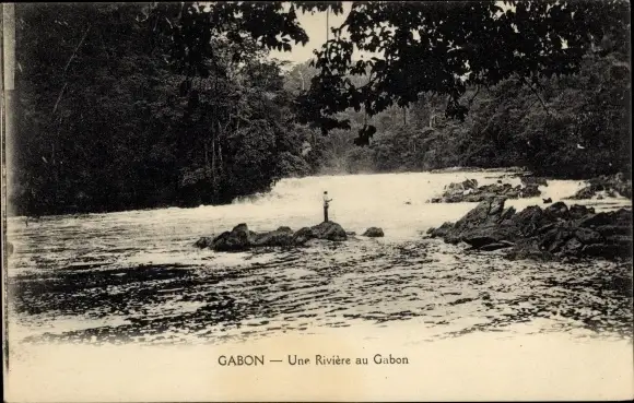 Ak Gabun, Flussufer, Mann auf einem Felsen