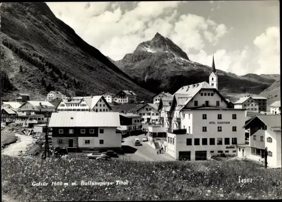 Ak Galtür in Tirol, Ballunspitze, Blick auf den Ort