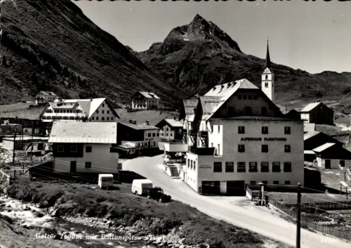 Ak Galtür in Tirol, Galtür 1600m, Balunspitz, ALPSHAUS FLUGT, Berglandschaft