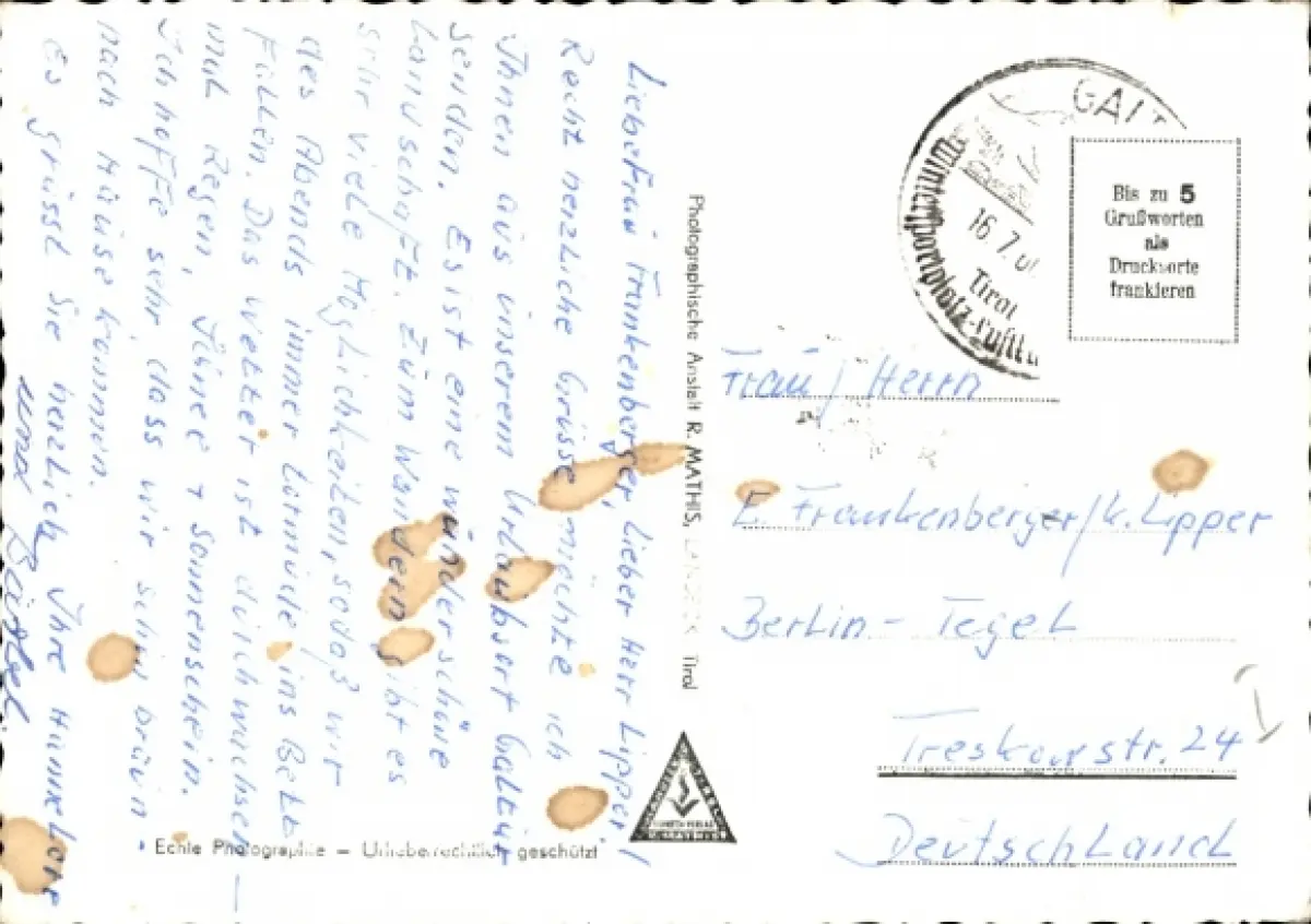 Von meiner Bestellung am Dienstag 12.01.2026 um 20:52 Uhr und Überweisung des Betrags am gleichen Tag um 22:26 Uhr bis zur Ankunft der Ansichtskarte bei mir am 21.01.2026 um ca. 14:00 Uhr dauert der gesamte Vorgang rd. 9 Tage - es wäre wünschenswert, wenn diese Zeiten dazwischen sich verkürzen ließen - Danke und Gruß - Heinz Vorderwülbecke (andere Ansichtskartenverkäufer sind da wesentlich schneller).