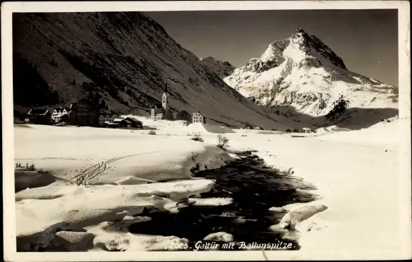 Ak Galtür in Tirol, Panorama mit Ballunspitze, Schnee