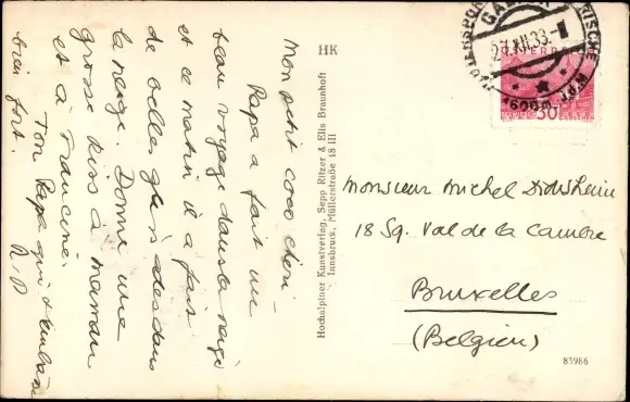 Zustand, siehe Scan, gelaufen, 1933 - ca 14 cm X 9 cm