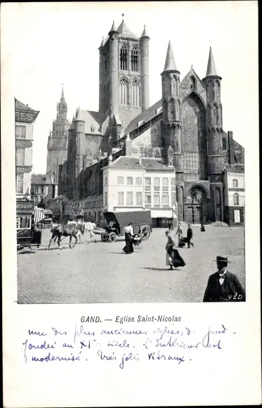 Ak Gand Belgien Ostflandern, Eglise Saint Nicolas,Platz