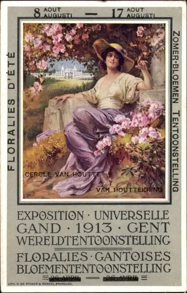 Ak Gand Gent Ostflandern, Exposition Internationale 1913, Floralies, Gantoises, Frau auf einer Wiese