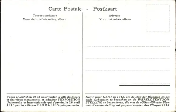 Ansichtskarte, Postkarte, Ausstellung, Messe, Expo, Ausstellungshalle, Gent