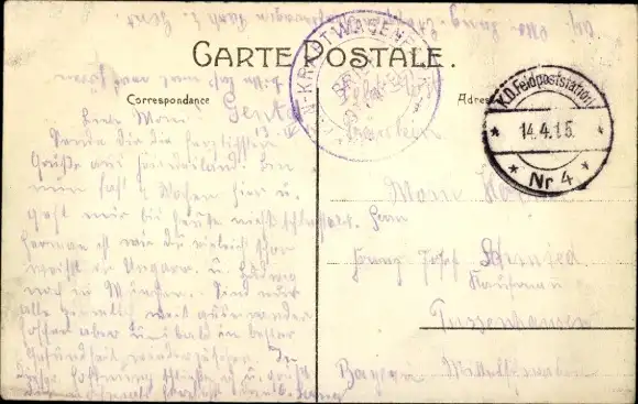 Zustand, siehe Scan, gelaufen, 1915 - ca 14 cm X 9 cm