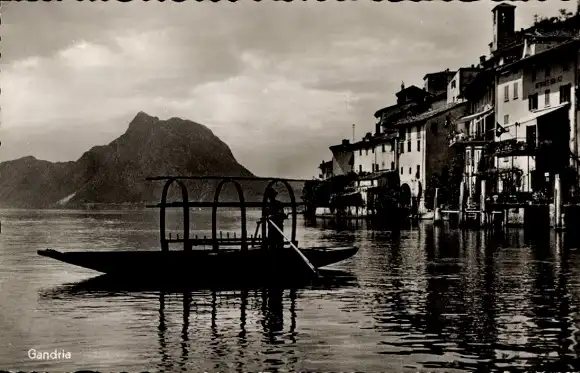Ak Gandria Lago di Lugano Tessin Schweiz, Fischerboot, Stadt, Berg