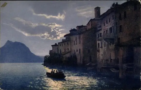 Ak Gandria Lago di Lugano Tessin Schweiz, Stadtansicht, Ruderpartie
