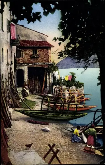 Ak Gandria Lago di Lugano Tessin Schweiz, Uferpartie, Boote