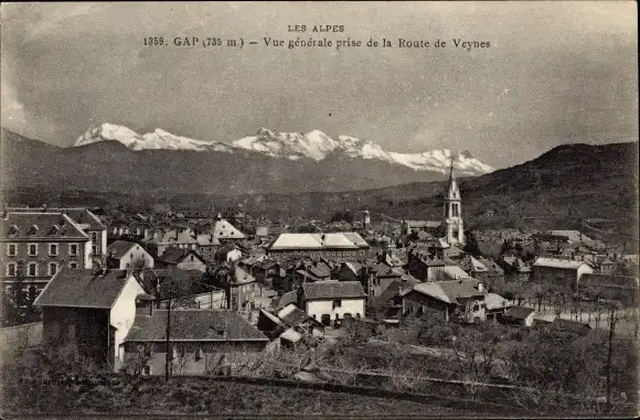 Ak Gap Hautes Alpes, Les Alpes, Vue generale prise de la Route de Veynes