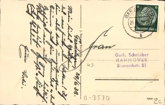 Zustand, siehe Scan, gelaufen, 1938 - ca 14 cm X 9 cm