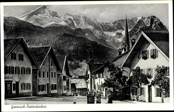 Ak Garmisch Partenkirchen in Oberbayern, Straßenpartie vor Gebirgspanorama