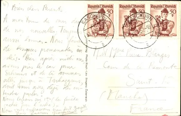 Zustand, siehe Scan, gelaufen, 1952 - ca 14 cm X 9 cm