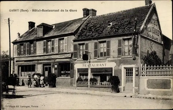 Ak Gasny Eure, Hôtel de la Gare, vue générale