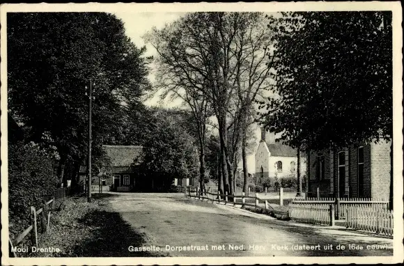 Ak Gasselte Drenthe, Dorpsstraat mit Ned. Herv. Kerk