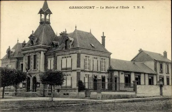 Ak Gassicourt Yvelines, La Mairie et l'Ecole