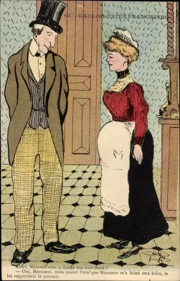 Ak Gauloiseries Francaises, Alors, Madame vous a donne vos huit jours