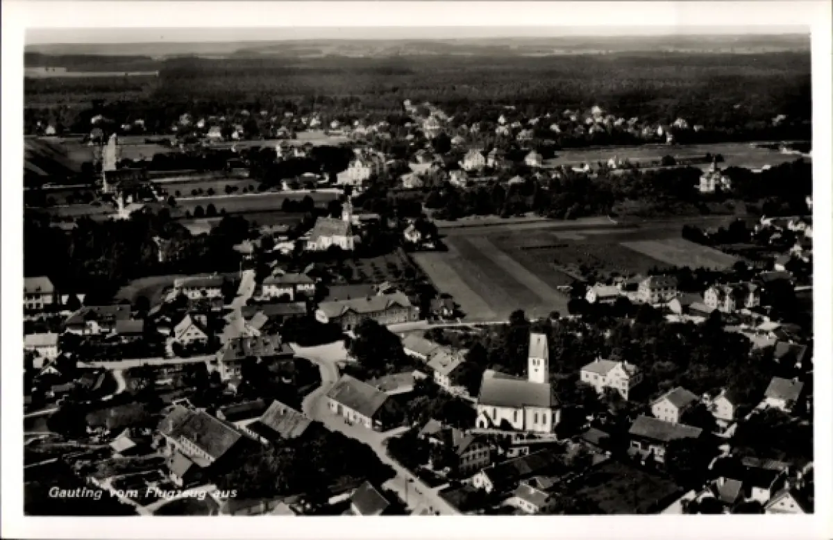 Ak Gauting in Oberbayern, Fliegeraufnahme