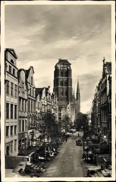 Ak Gdańsk Danzig, Alt- Jopengasse, Marienkirche, Architektur