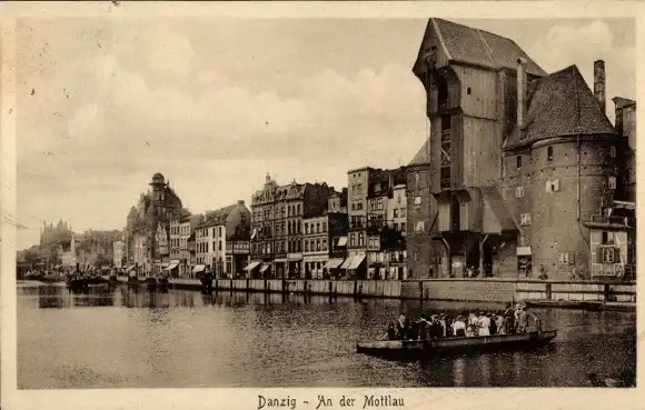 Ak Gdańsk Danzig, An der Mottlau, Krantor