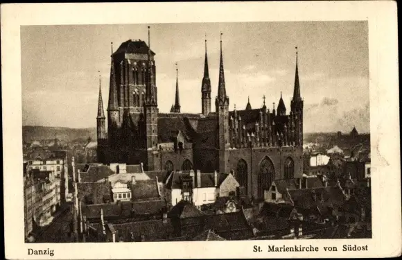 Ak Gdańsk Danzig, Ansicht der St. Marienkirche von Südost, Glockenturm