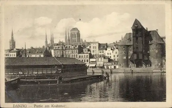 Ak Gdańsk Danzig, Ansicht vom Krahntor, Wasserfront, Gebäude, Hafen