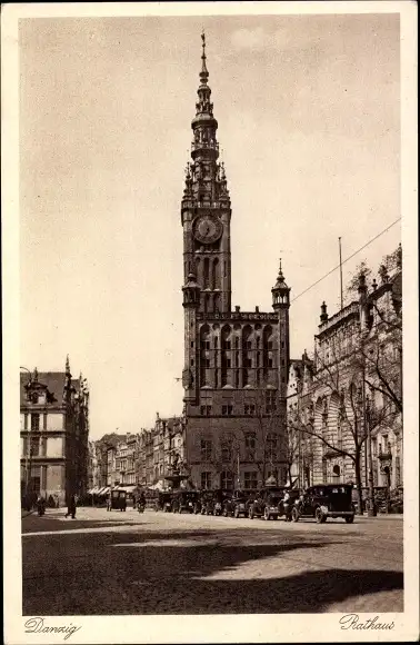 Ak Gdańsk Danzig, Ansicht vom Rathaus, Straßenpartie, Autos