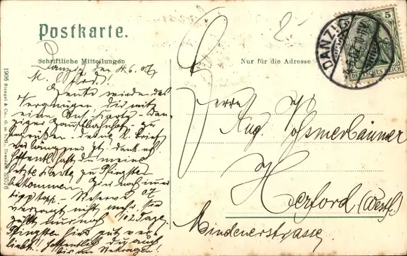Zustand, siehe Scan, gelaufen, 1907 - ca 14 cm X 9 cm