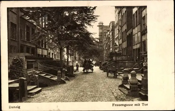 Ak Gdańsk Danzig, Blick in die Frauengasse mit Tor, Kutsche, Straßenpartie
