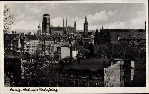 Ak Gdańsk Danzig, Blick vom Bischofsberg, Marienkirche