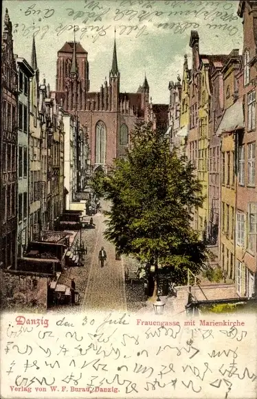 Ak Gdańsk Danzig, Frauengasse, Marienkirche