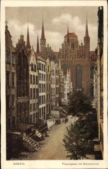 Ak Gdańsk Danzig, Frauengasse, Marienkirche, historische Architektur, Altstadt
