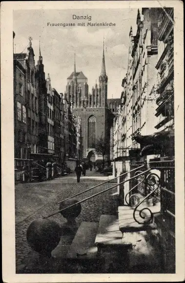 Ak Gdańsk Danzig, Frauengasse mit Marienkirche