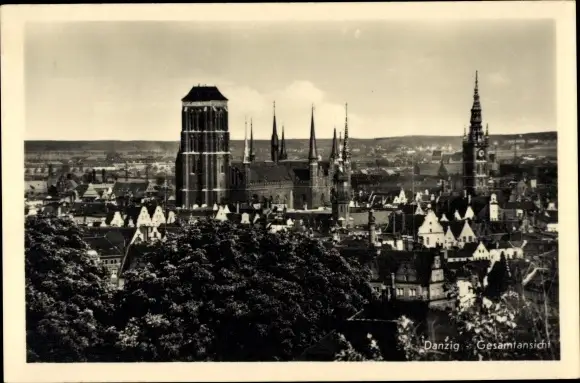 Ak Gdańsk Danzig, Gesamtansicht, Marienkirche