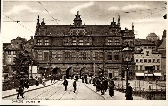 Ak Gdańsk Danzig, Grünes Tor, historische Architektur, Menschen auf der Straße