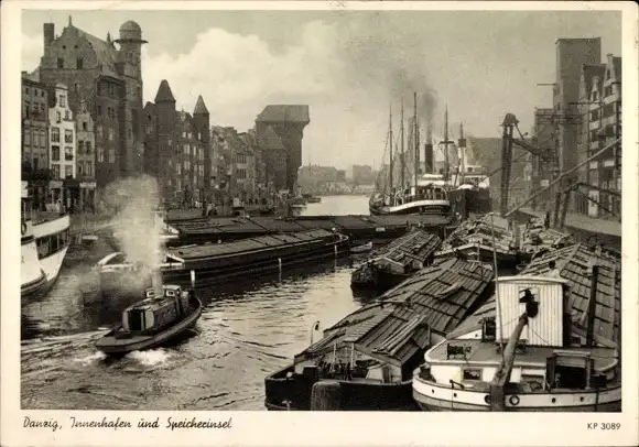 Ak Gdańsk Danzig, Innenhafen und Speicherinsel