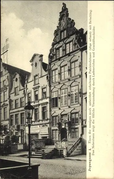 Ak Gdańsk Danzig, Jopengasse 1, Patrizierhaus, Geschäfte