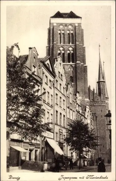 Ak Gdańsk Danzig, Jopengasse, Marienkirche