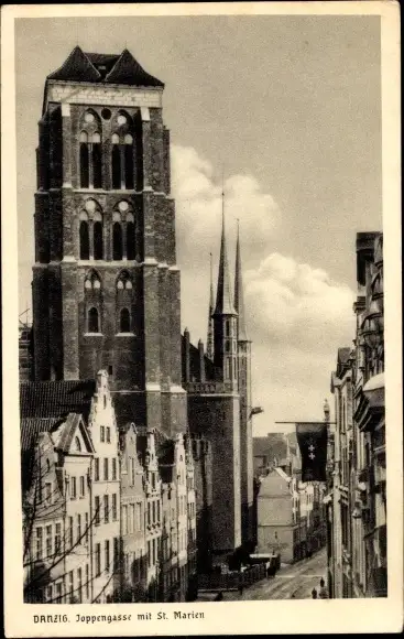 Ak Gdańsk Danzig, Jopengasse mit St. Marien
