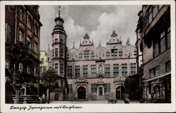Ak Gdańsk Danzig, Jopengasse mit Zeughaus